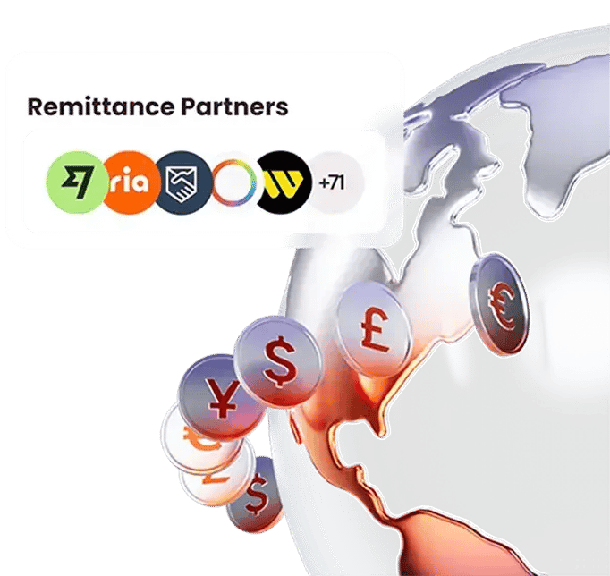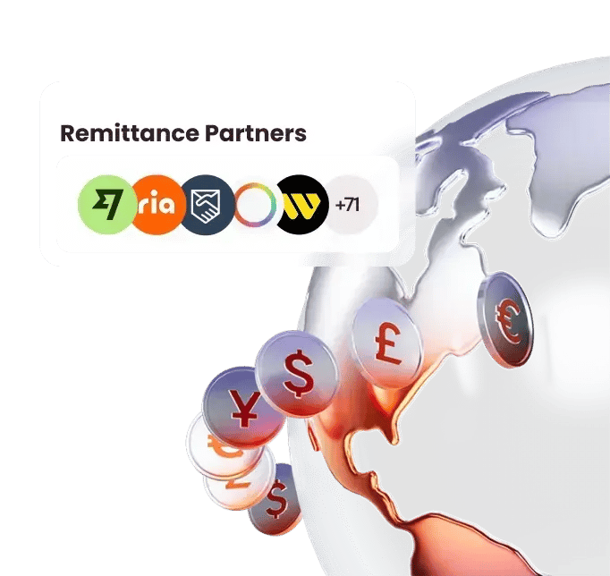 Receive international transfers directly into your wallet through our 70+ Global Remittance Partners. Wherever they are, whenever you need it.