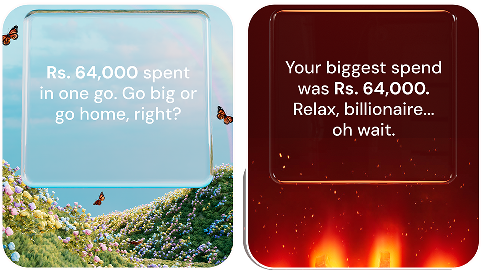 This one is the friend who hypes you up and genuinely believes you’re doing everything right. Honestly, we all need that sometimes. Easy-going, encouraging, and just delusional enough to romanticise every transaction. It looks at your spending habits with a smile and gives you the benefit of every doubt. Chaos? Cute. Impulse purchases? Bold. Low spend? Responsible. High spend? Generous. And yes, it makes our attachment to you embarrassingly obvious. We turned your year into a feel-good montage. If you want your Rewind to feel warm and flattering, this is your safe zone.